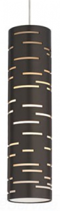 Captures light in motion. The sleek metal surface is laser-cut with several horizontal cutouts which allow light to shine through the inner white case glass diffuser. Includes low-voltage, 50 watt halogen bi-pin lamp or 6 watt replaceable LED module and six feet of field-cuttable suspension cable.