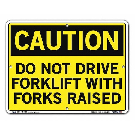Vestil SI-C-58-B-AL-040 DO NOT DRIVE FORKLIFT WITH FORKS RAISED Caution Sign, Aluminum, 0.040" Overall Size, 12.5" W x 9.5" H