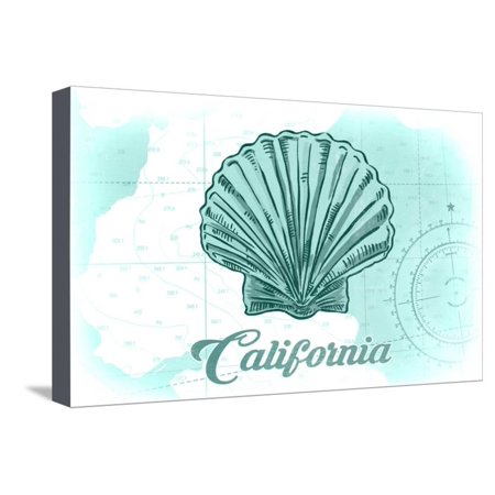 <ul> <li>Title: California - Scallop Shell - Teal - Coastal Icon</li> <li>Artist: Lantern Press</li> <li>Product Type: Stretched Canvas Print</li> <li>Expertly finished and printed on artist-grade cotton</li> <li>Stretched & Ready to Hang</li> <li>Handcrafted in the USA</li> </ul>