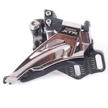 This top-of-the-line Shimano XTR front derailleur is designed for high-performance mountain bikes. Side-swing design ideal for suspension designs and additional tire clearance Increase pull strength for faster shifting 48.8mm chainline For frames with traditional cable routing DynaSys 11 technology Titanium hardware Bike Type: MTB Speeds: 11 Cage Material: alloy Chainring Compatibility: double / 38-tooth max Derailleur Capacity: 10 Pull Type: bottom Swing Type: top E-Type mount Color: black and silver Weight: 121 grams New OEM: not in regular retail packaging