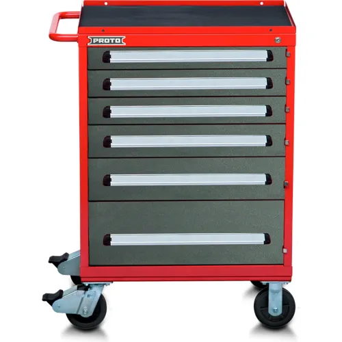 Proto® 560S Roller Cabinet W/ 6 Drawers, 21-3/8"D x 42-1/2"H, Red & Gray