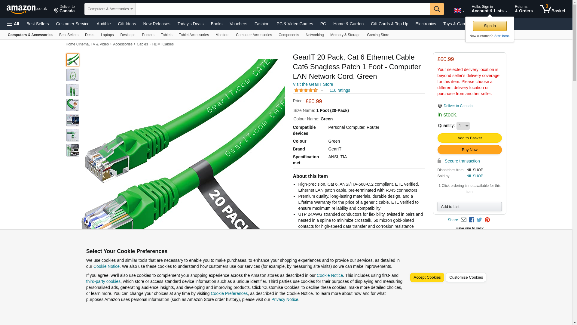 | Part number | 3CAT6E-GREEN-20PACK |