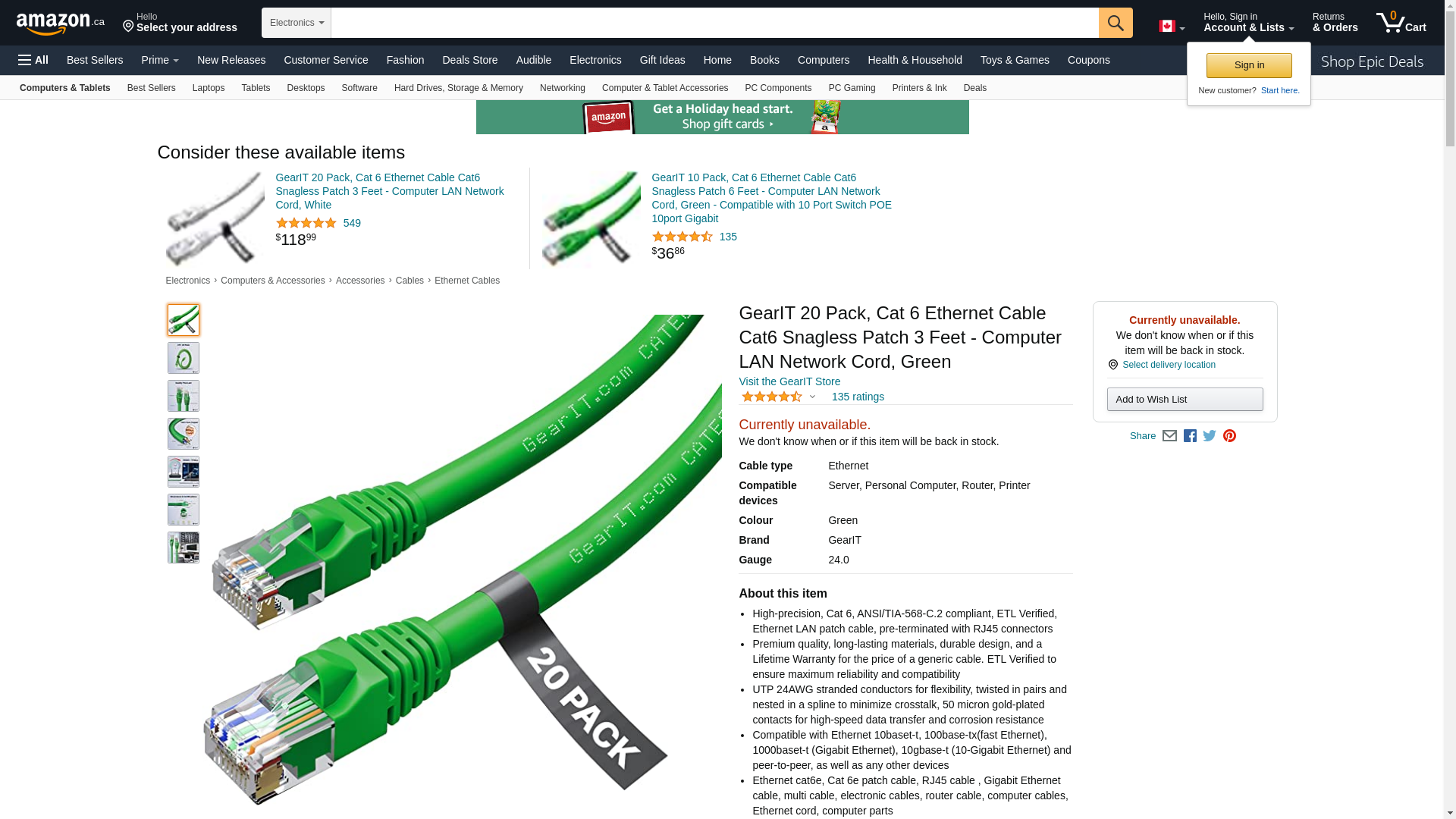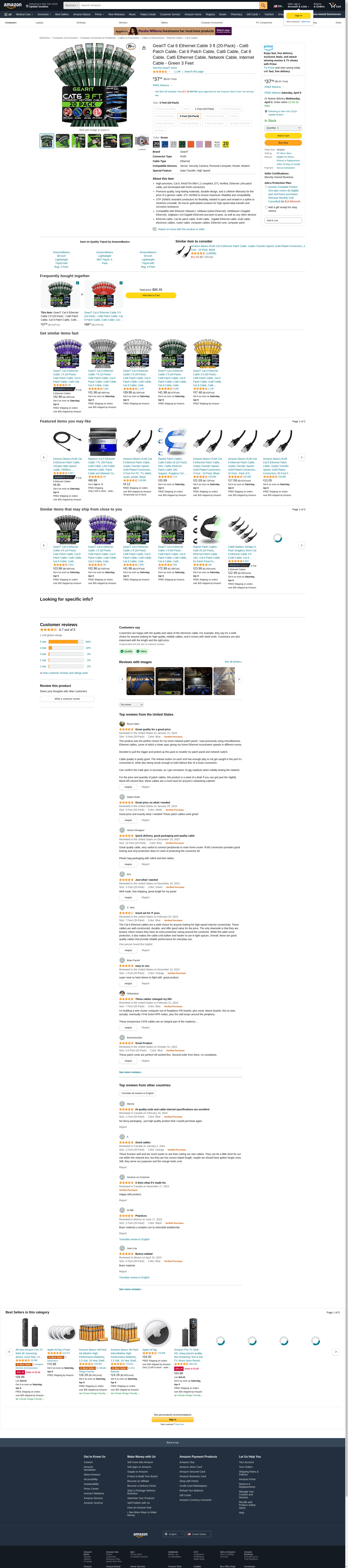 GearIT Cat 6 Ethernet Cable 3 ft (20-Pack) - Cat6 Patch Cable, Cat 6 Patch Cable, Cat6 Cable, Cat 6 Cable, Cat6 Ethernet Cable, Network Cable, Internet Cable - Green 3 Feet