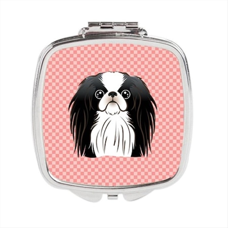 Caroline's Treasures BB1230SCM Checkerboard Pink Japanese Chin Compact Mirror Decorative Travel Makeup Mirror for Women Girls Gifts Pocket Makeup Mirror Folding Handheld