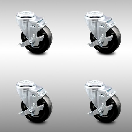 4 Inch SS Hard Rubber Wheel Swivel Bolt Hole Caster Set with Brake SCC