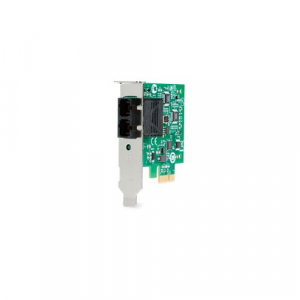 Allied Telesis Network interface card provides up to 100Mbps data transfer rate. Card offers you the maximum possible bandwidth and bus efficiency. Allied Telesis AT-2711FX/SC-901 Network interface card offers 1.2 miles of maximum transfer distance and supports ACPI function. Card with PCI express x1 interface features IEEE 802.1p standard and fast Ethernet data link protocol. Interface card with SNMP remote management protocol has Ethernet 100Base-FX cabling. Wired network interface card with plug-in card form factor features BCM5752 Broadcom processor and 72KB RAM. Desktop network interface card is use to give maximum possible bandwidth. Measures 2.7"H x 3"W. Features fast Ethernet data link protocol for high performance and transfers data at the rate of 100 Mbps. Supports PCI Express x1, SC 100Base-FX host interface for easy connectivity has plug-in-card form factor for economical ethernet network connection. Features status indicators on for link up, off link down and blink for activity. Supports Broadcom BCM57762 network controller for high performance. Consumes 2.0 W max. power and uses 3.3 signaling voltage. Meets IEEE 802.1p Quality of Service, IEEE 802.1Q VLAN tag, IEEE 802.1as 1588 precision time protocol, IEEE 802.1qat interface standards. Operates with the maximum cabling distance of Up to 6560' in full-duplex. MSI and MSI-x, IEEE 802.1x flow control, Audio/Video Bridging (AVB), IEEE 802.1p-based traffic prioritization, TCP Checksum RX/TX supported. Operates efficiently on Windows 8/7/Vista/XP (32-bit, 64-bit), Windows Server 2008, Windows Server 2008 R2 operating systems. Has a operating temperature of 0 - 50 deg C and -25 - 70 deg C storage temperature to adjust for all environmental conditions. Includes full-height bracket and low-profile bracket to connect easily for desktop. Meets RoHS, UL, FCC/EN55022 Class B, TUV, EN55024, CE, C-TICK, VCC, TAA certifications and standards. Weighs 50 g. Min operating system: Linux 2.4, Linux 2.