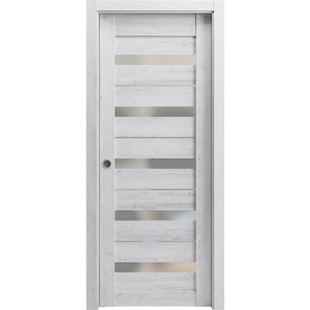 Sliding French Pocket Door 42 x 80in, Nordic White W/ Frosted Glass, Kit Trims Rail Hardware