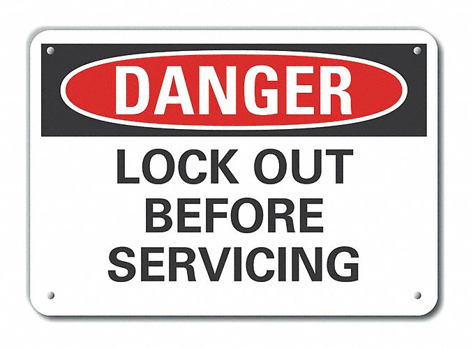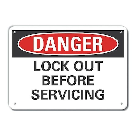 Plastic Lockout Tagout Danger Sign, Horizontal Rectangle, Number of Printed Sides 1, English, Sign Format Traditional OSHA, Sign Legend Lock Out Before Servicing, Sign Legend Background Color White, Sign Legend Style Text