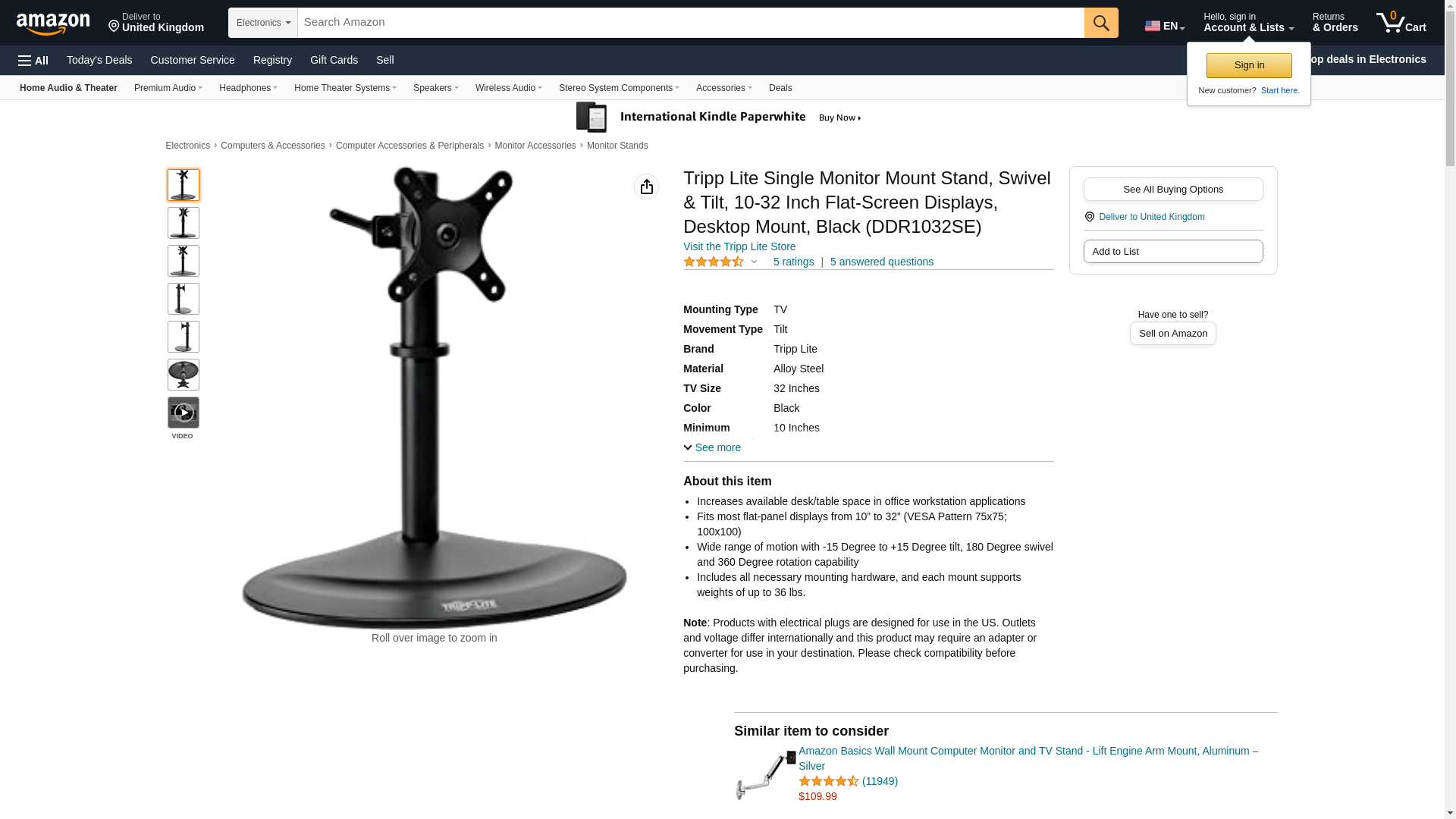 | Feature | TRIPP LITE Display TV LCD Desk Mount Swivel Tilt /10" to 32" Screen ... |