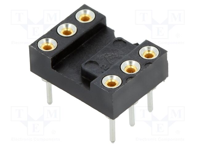 IC SOCKET, DIP, 2.54MM, 6 POSITION; No. of Contacts:6Contacts; Connector Type:DIP Socket; Pitch Spacing:2.54mm; Product Range:-; Row Pitch:7.62mm; Contact Material:Beryllium Copper; Contact Plating:Gold Plated Contacts RoHS Compliant: Yes