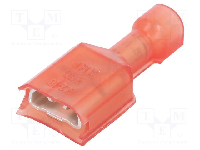| Feature | Manufacturer: TE Connectivity Product Category: Insulated Terminals RoHS: Product: Faston Terminals Series: Wire Gauge: 22-18 Stud / Tab Size: 0.25 in x 0.032 in Insulation: Insulated Color: Red Gender: Female Contact Plating: Tin Contact Material: Phosphor Bronze Termination Style: Crimp Brand: TE Connectivity / AMP Insulation Material: Nylon Material: Phosphor Bronze |