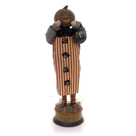 Halloween PUMPKIN CLOWN MAN W/BLACK CAT Polyresin Bucket Primitive Ta9009
