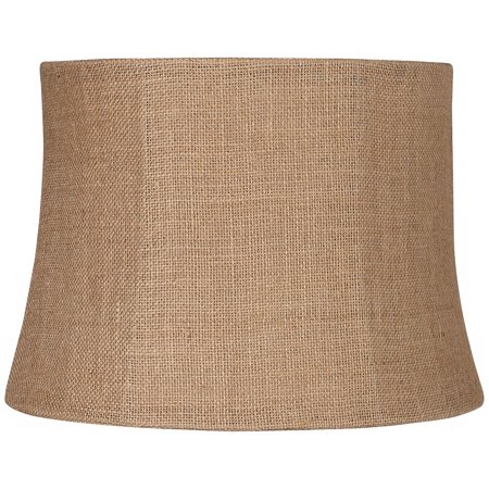 <ul> <li>10" high x 12" across the top x 14" across the bottom.</li> <li>Chrome spider fitter.</li> <li>Design by Brentwood Collection?.</li> <li>Natural burlap fabric.</li> <li>Tan lining.</li> <li>The correct size harp and a finial are included free with this shade.</li> </ul>