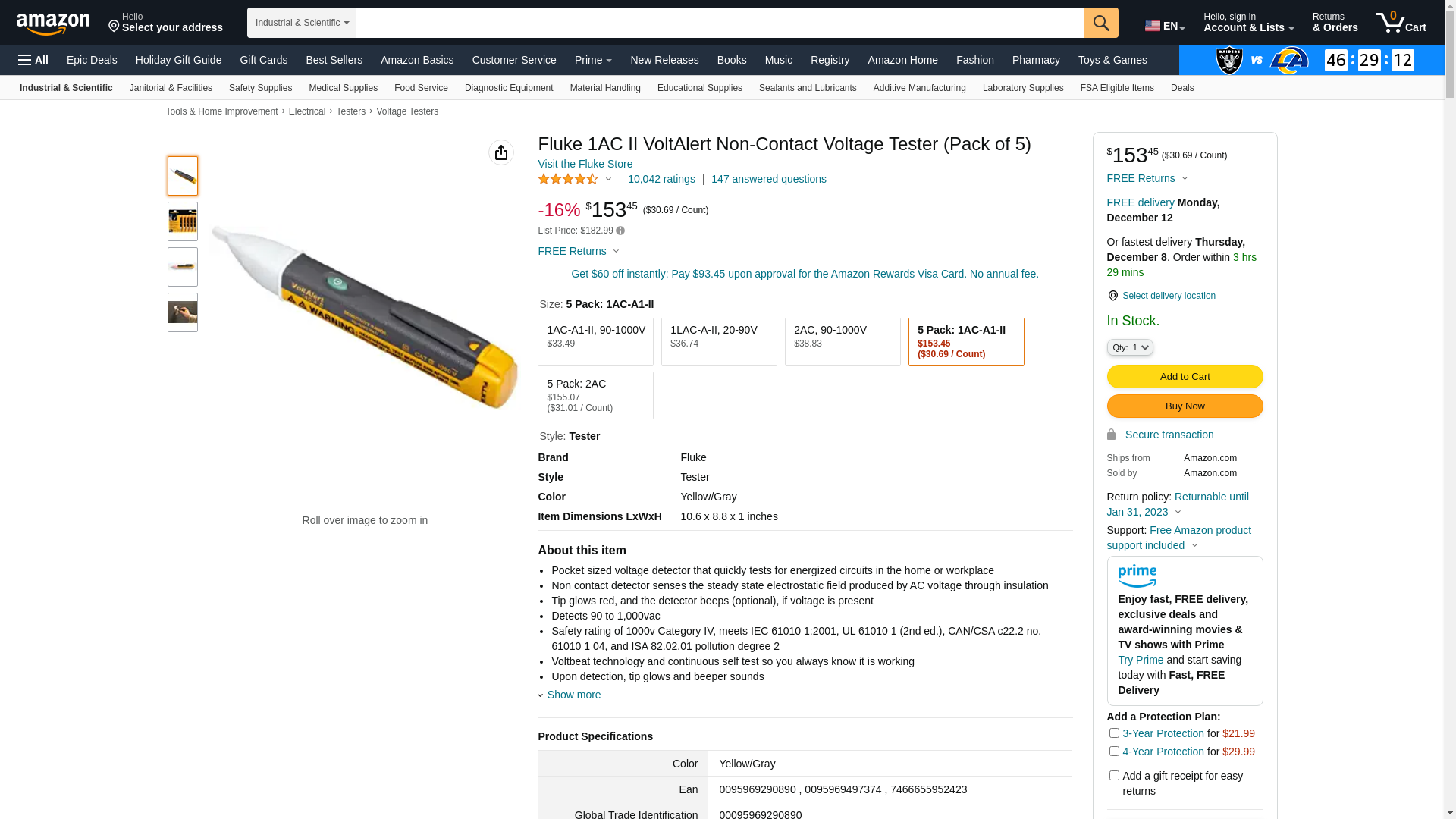 Buy Fluke FLK-1AC-A1-II-5PK, AC Non-Contact Voltage Tester - Prime Buy