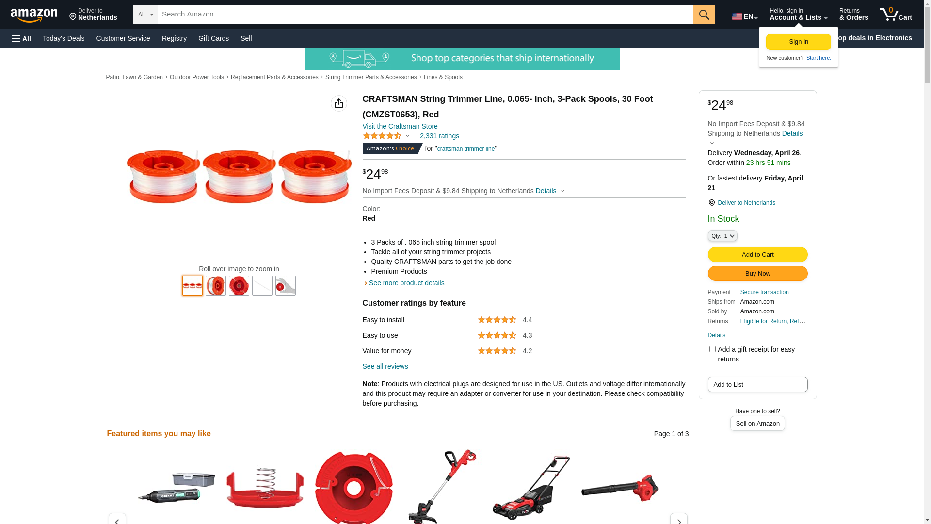 CRAFTSMAN String Trimmer Line, 0.065- Inch, 3-Pack Spools (CMZST0653), Red