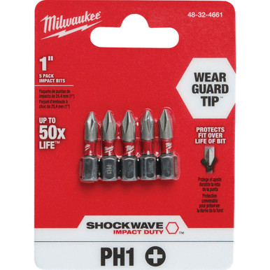 Milwaukee Accessory 48-32-4661 Shockwave Phillips Insert Bit Pk 5