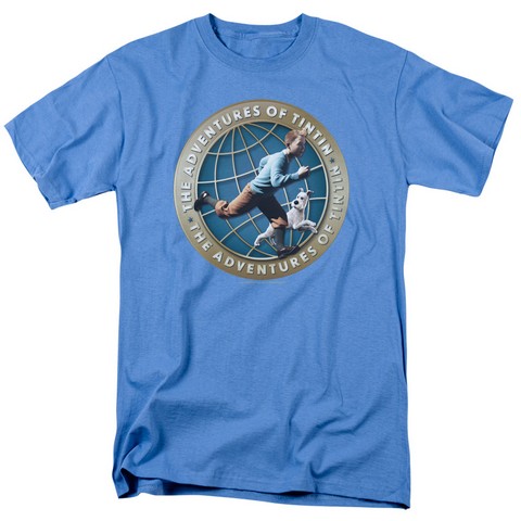 Trevco Tintin-Around The Globe Short Sleeve Adult 18-1 Tee, Carolina Blue - XL