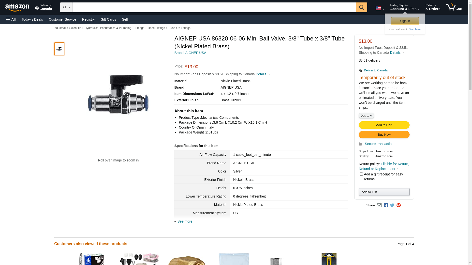 Mini Ball Valve, Body Material Nickel-Plated Brass, Body Style Inline, 1-Piece, Pipe Size 3/8 in, Tube Size 3/8 in, Connection Type Push x Push, Full Port, Max. Pressure 190 psi CWP, Temp. Range 0 Degrees to 200 Degrees F, Ball Material Chrome Plated Brass, Seat Material PTFE, Stem Type Blowout Proof, Handle Type Wedge, Handle Material Composite, Stem Material Nickel Plated Brass