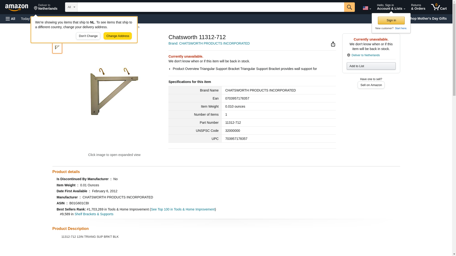 Chatsworth 11312-712 | Triangular Support Bracket-164158