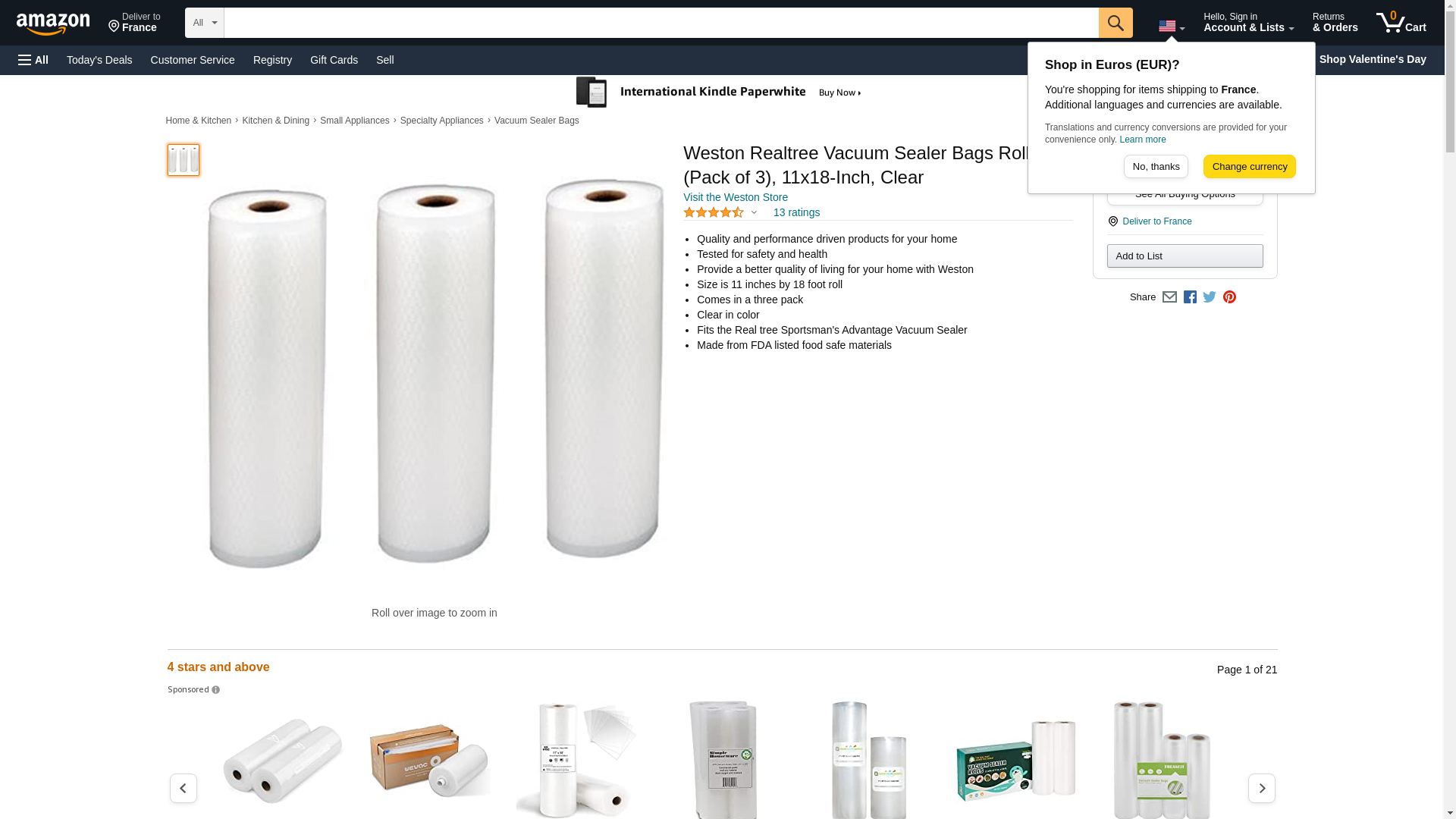 Weston Realtree Vacuum Sealer Bags Roll (Pack of 3), 11x18-Inch, Clear