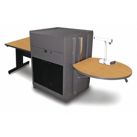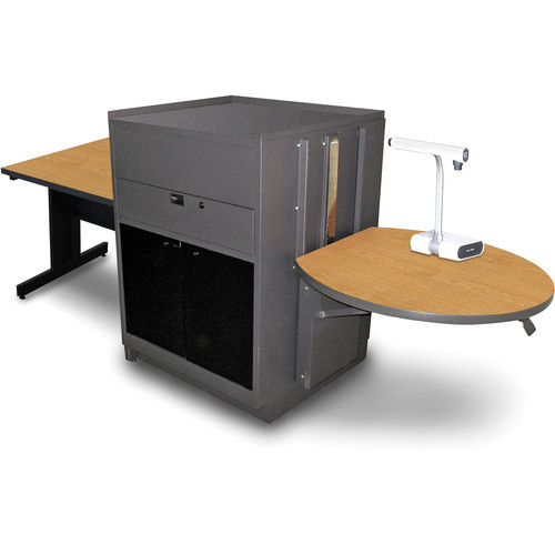 Present with confidence while enjoying spacious AV storage with Marvel's Vizion Media Center with Rectangular Table. Use the 36"W x 30"D table for interactive learning or to keep lecture materials close at hand. The media center's height-adjustable work platform offers unparalleled flexibility. The lockable, pull-out projector shelf and storage drawer provide easy access to important equipment. Keep expensive AV equipment secure in the large storage cabinet with locking steel or acrylic doors. Add an AmpliVox sound system with a wireless headset or handheld microphone for an extra cost. Marvel's Vizion Media Center with Rectangular Table is GREENGUARD certified. Key Features 36" x 30" rectangular table Adjustable-height work platform Pull-out projector shelf Front storage drawer Lockable storage cabinet Optional sound system available Specifications Frame Material: Steel Table/Work Platform Top Material: High-pressure laminate Finish: Powder-coat paint Work Platform Dimensions: 30"W x 29 3/4"D x 26"-42"H Overall Width: 66" Overall Depth: 30" Overall Height: 47" Warranty: Lifetime