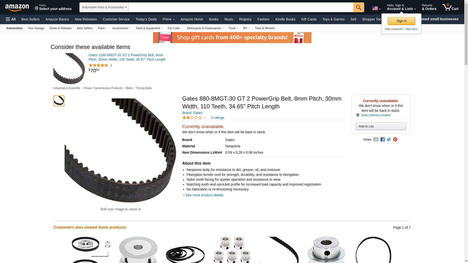 Gates 880-8MGT-30 GT 2 PowerGrip Belt, 8mm Pitch, 30mm Width, 110 Teeth, 34.65" Pitch Length