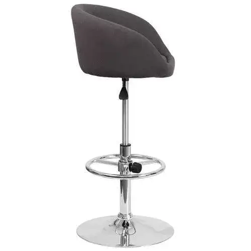 Flash Furniture Luis Contemporary Charcoal Fabric Adjustable Height Barstool with Barrel Back and Chrome Base