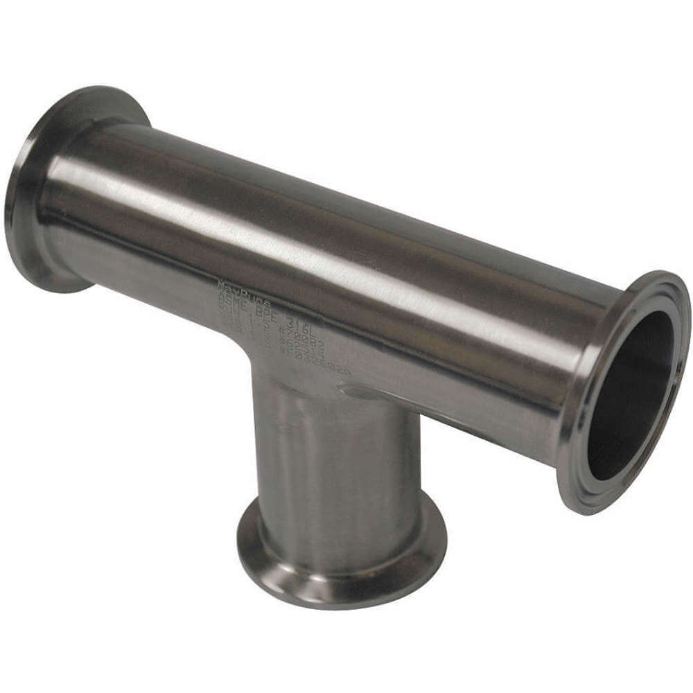 'Equal Tee, Tube Fitting Material T316L Stainless Steel, Fitting Connection Type Clamp, Tube Size 3/4 In., Surface Finish 15 RA EP I.D./32 RA O.D., Wall Thickness 0.083 In. x 0.065 In.'