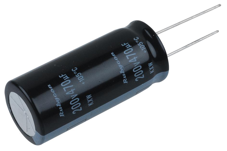 RUBYCON 200KXW470MEFC18X40 Electrolytic Capacitor, Miniature, KXW Series, 470 µF, ± 20%, 200 V, 18 mm, Radial Leaded