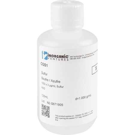 Inorganic Ventures CGS1-1 1,000ppm Sulfur (S) Standard for ICP, 125mL Volume