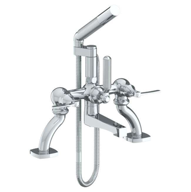 WATERMARK 115-8.2-MZ4-SEL H-LINE 15 1/4 INCH THREE HANDLES DECK MOUNT TUB FILLER WITH HAND SHOWER, SATIN ELITE BRASS,...