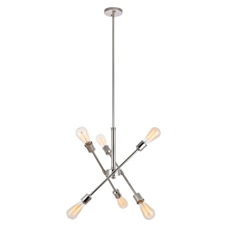 - Requires an incandescent or LED E26 bulb (not included); Type Pendant; Product Warranty 1 year limited; Feature 2 Adjustable rod allows for mounting between 36 and 67 inches from the canopy; Feature 3 Repositionable arms direct light in any direction; 6 incandescent or LED E26 bulbs required (not included); Feature 1 Preassembled steel frame in polished nickel; 17.1 inches wide and 19.6 inches high