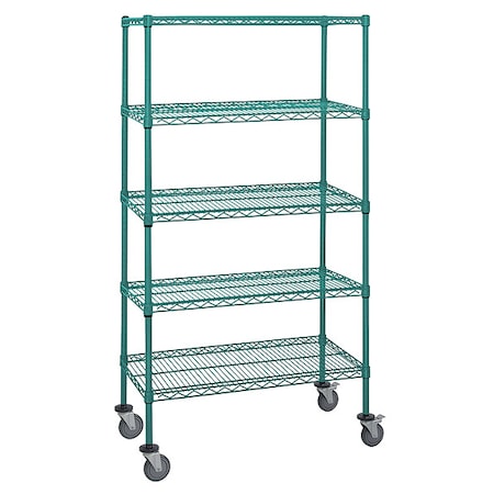 Quantum Storage 18X36 Wire 5 Shelf Mobile Cart 63In Green Epoxy - M1836P46-5