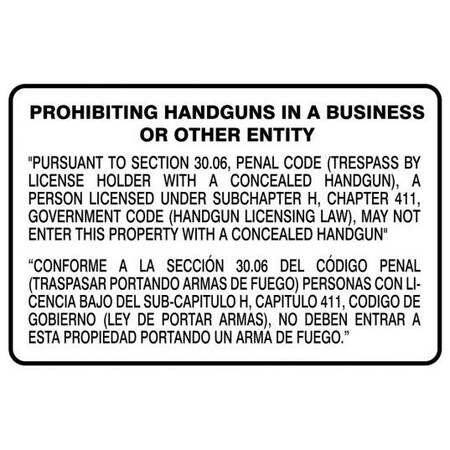 Bilingual Texas 30.06 Regulation Safety Signs: Prohibiting Handguns In A Business Or Other Entity Texas 30.06 Conceal Carry 30" x 48" Dura-Plastic 1/Each - MACC528XT - Jendco Safety Supply