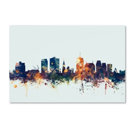 Christchurch NZ Skyline Blue by Michael Tompsett, 22x32-Inch Canvas Wall Art