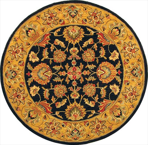 Safavieh Heritage Collection HG343E Handcrafted Traditional Oriental Charcoal and Gold Wool Round Area Rug (8' Diameter)