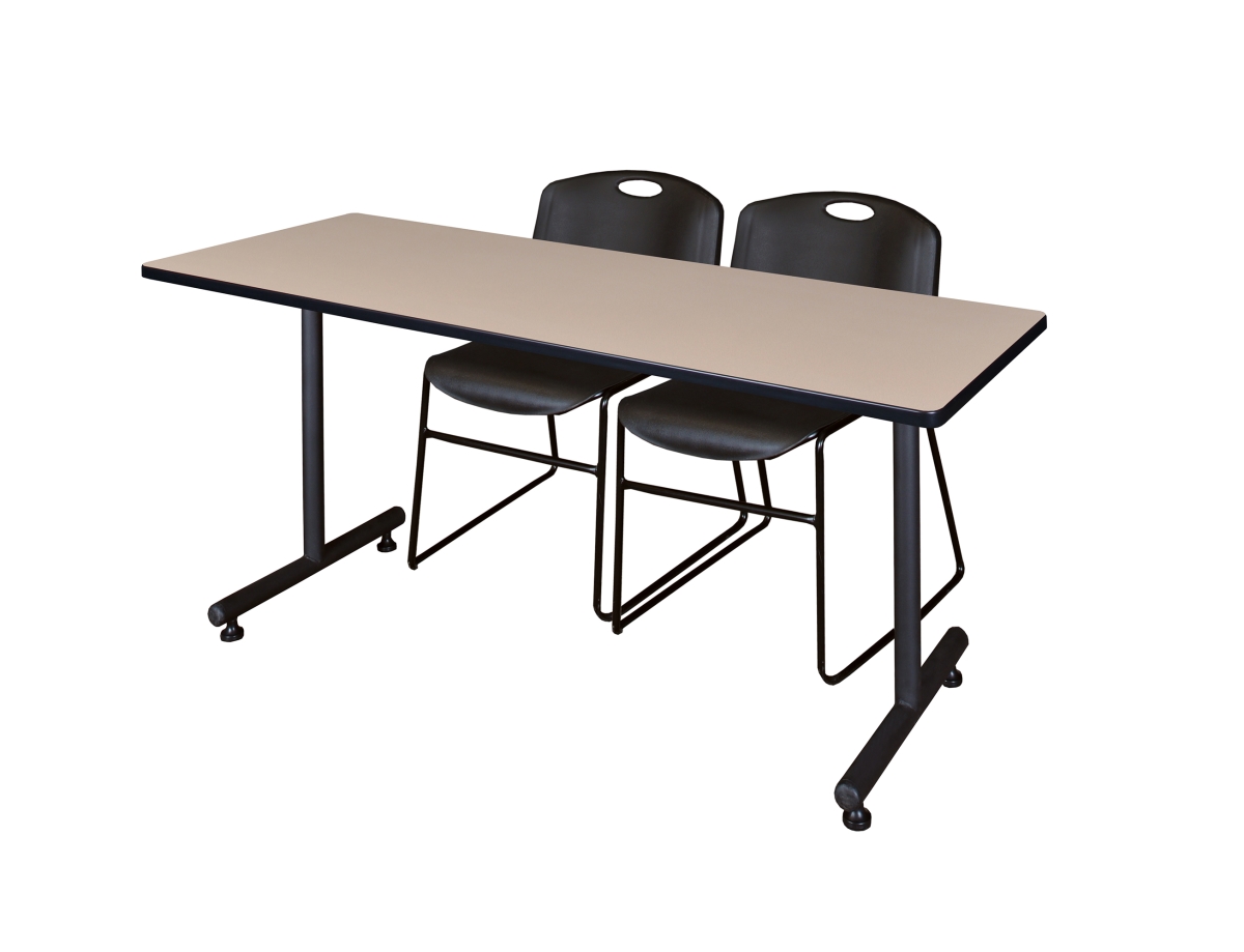 Regency MKTRCT6630BE44BK 66 x 30 in. Kobe Training Table, Beige & 2 in. Zeng Stack Chairs - Black