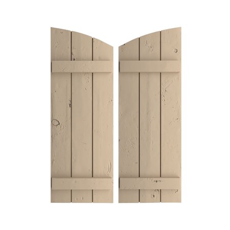 Ekena Millwork SHUBJL16X52KPPR (46 1/2" Low Side) Timberthane Three Joined Board-n-Batten w/Elliptical Top Faux Wood Shutters (Per Pair), Primed Tan, 16 x 52" H