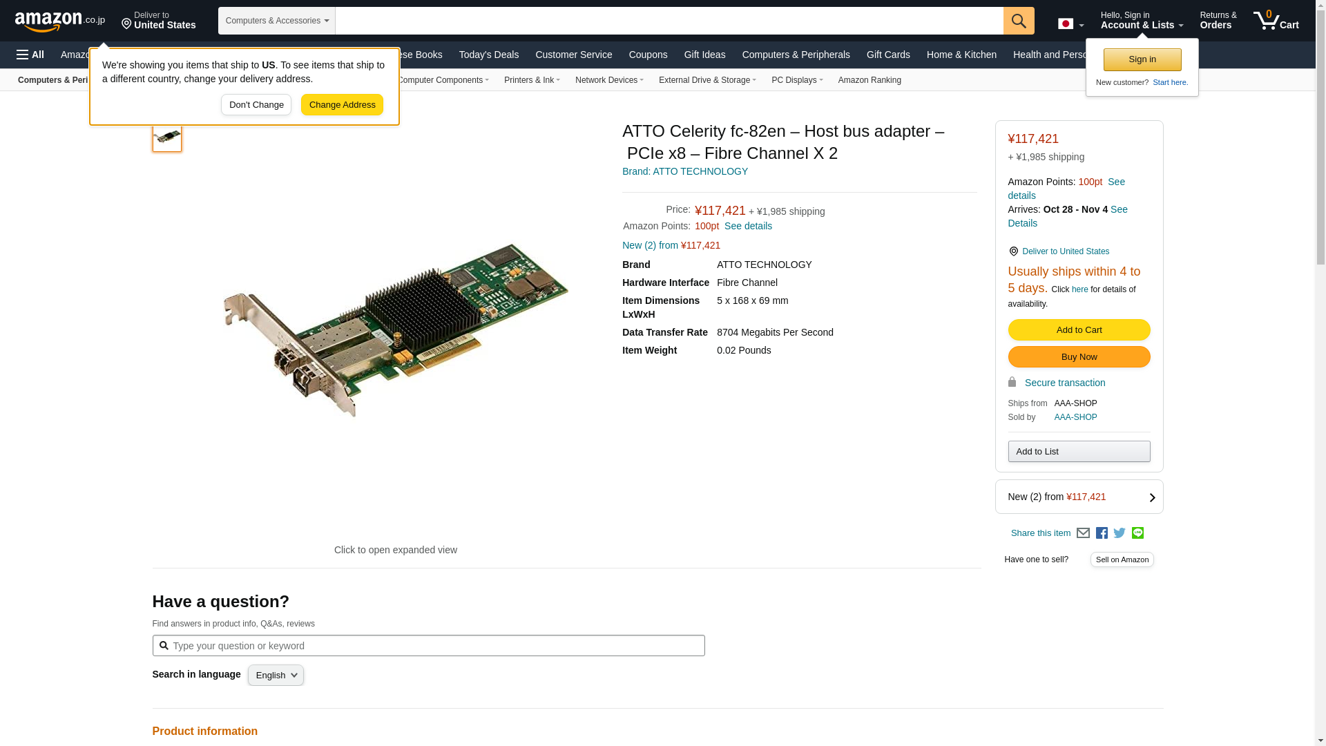 - Atto Technology CTFC-82EN-000 Fibre Channel Host Bus Adapter
