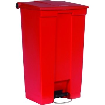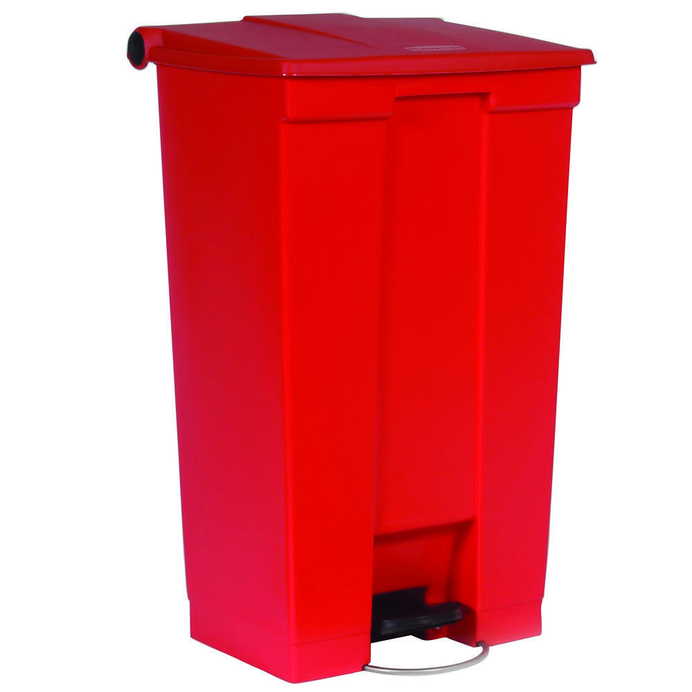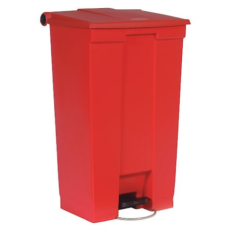 Indoor Utility Step-On Waste Container, Rectangular, Plastic, 23 Gal, Red