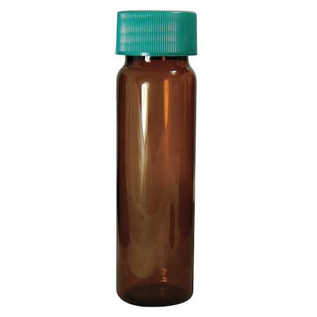 - 12 x 35mm, .50 dram (1.85ml) Amber Borosilicate Glass Vial with 8-425 Green Thermoset F217 & PTFE Lined Cap attached, Vacuum & Ionized