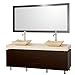 Wyndham Collection Malibu 72" Double Bathroom Vanity in Espresso, Ivory Marble Countertop, Avalon Ivory Marble Sinks & 70" Mirror