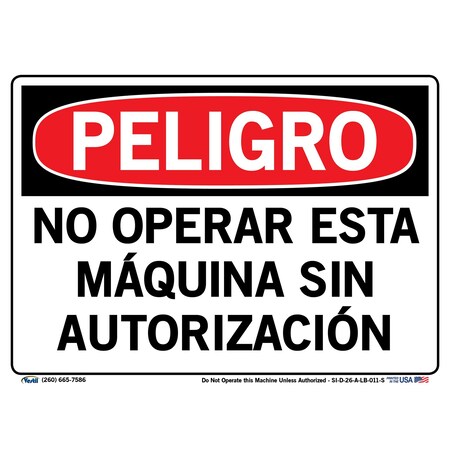 Vestil Spanish Danger Sign SI-D-26-A-LB-011-S, Do Not Operate this Machine Unless Authorized, NO OPERAR ESTA MÁQUINA SIN AUTORIZACIÓN, 10.5X7.5 .011 LABEL/DECAL