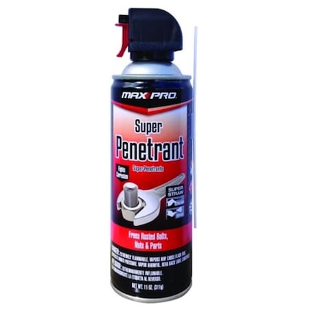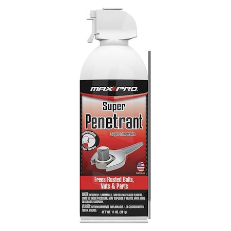 Max ProSuper Penetrant is a fast acting deep-penetrating lubricant that reduces friction fights corrosion and displaces moistureMax Pro Super Penetrant removes dirt and grease while leaving a coating that protects against subsequent corrosion Cuts through rust and corrosion to free locks bolts and nuts. Item Weight - 11 ozRecommended for. Hardware Automotive Repair Locks Sports Equipment Vacuums Sewing Machines Cash Registers TVs VCRs Stereos Copy Machines Mailing Machines Fax Machines Clocks Bolts Photographic Equipment Typewriters Household Appliances Nuts Hinges Moving Parts Power Tools Chassis Starters Distributors Brake Cleaning Brake Drums Clutches Cylinders Solenoids Electric Motors Spark Plugs Generators Valves Gears Rollers Doors Switches Wheels Chains Bearings Gun Cleaning Bikes Electronics Fishing Rods Boats Outboard Motors Motorcycles