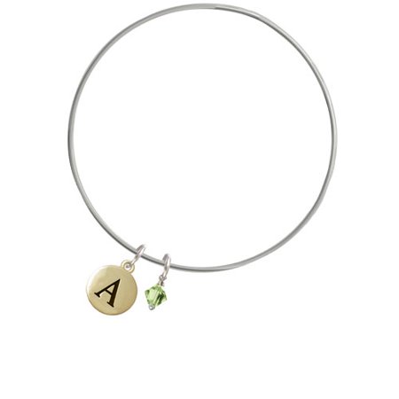 Capital Gold Tone Letter - A - Pebble Disc - Lime Green Bicone Bangle Bracelet. Gold Tone Charm. Charm size is approx. 0.59 x 0.50 x 0.09 inches (HxWxD) including loop. 1.8 mm Bangle Bracelet inside circumference is approx: 2.50 Inches. Hand wrapped crystal bicone is approx: 6mm. This Bangle looks wonderful alone or layered with other Bangles to match your style. Available in many colors. We are a family owned company in the U.S.A. since 1977. PLEASE NOTE: Our products are lead safe, but are not intended for children 14 years and younger.