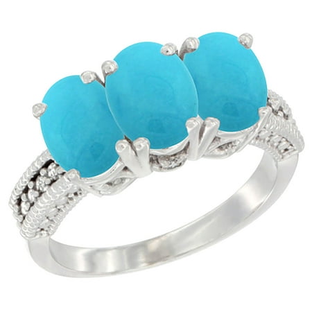 10K White Gold Diamond Natural Turquoise Ring 3-Stone 7x5 mm Oval, sizes 5 - 10