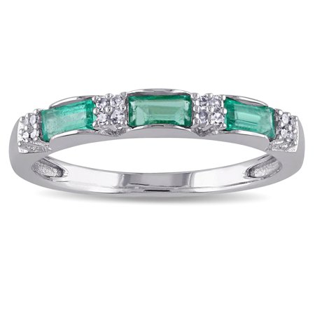 <ul> <li>Gemstone colors: Green</li> <li>Gemstone shapes: Baguette</li> <li>Three bezel-set baguette-cut emerald each measure 2 mm wide x 4 mm long</li> </ul>