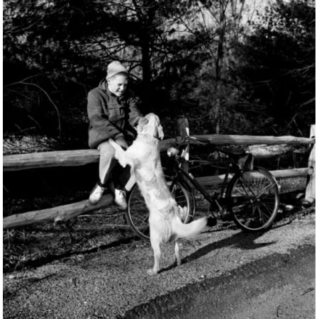 Boy with dog and bicycle sitting on fence was reproduced on the finest Canvas which captures all of the vivid colors and details of the original art. This museum quality Canvas Art was faithfully reproduced using ultra-precision print technology and fade-resistant archival inks on artist premium acid-free grade canvas. The overall size is 18 x 24 inches plus an additonal 1.5 inches of extra canvas on all 4 sides to allow for easy stretching and/or framing. This premium rolled Canvas Art is ready for stretcher bars or custom framing. <br /> <br /> <ul> <li>Brand New and Rolled and ready to stretch or frame</li> <li>Canvas Art Title: Boy with dog and bicycle sitting on fence</li> <li>Canvas Size: 18.00 x 24.00 inches plus an additional 1.5 inches of extra canvas on all 4 sides to allow for easy stretching and/or framing</li> <li>Licensor: Superstock</li> <li></li> </ul>