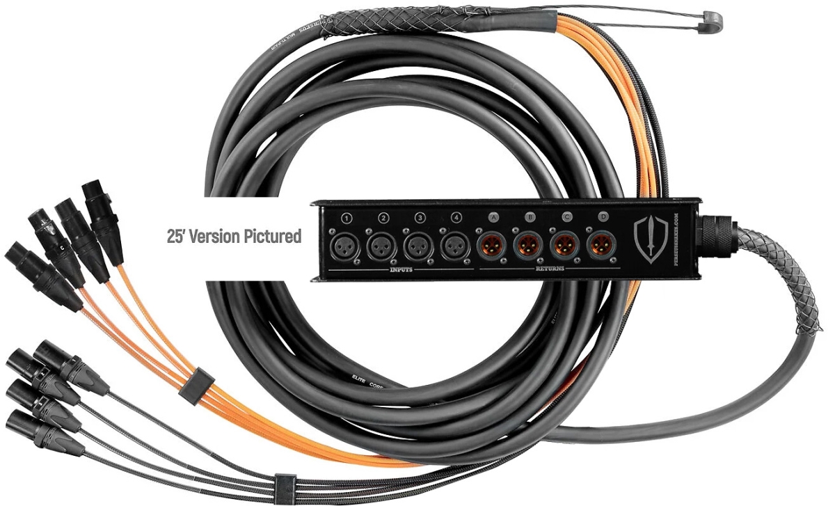 The Elite Core Audio <b>PERS44-BF-25</b> PERSEUS™ Snakes were designed by seasoned engineers and industry veterans to be the best multi-pair snakes in the world! PERSEUS™ Snakes are weatherproof and practically indestructible. All stage boxes are manufactured in the USA with a rugged, lightweight aluminum chassis protected by a sturdy steel base. PERSEUS™ Snakes fanouts feature genuine Neutrik connectors and TECHFLEX™ FLEXO® PET braided coating. Highly visable black and orange channels allow instant distinctions between sends and returns and BANKER DEVICES™ Seperators™ make finding the channel your looking for a dream. Every group of is bound by a single 8 channel Seperator™ and two 4 channel Seperators™ for easy id. Elite Core PERSEUS™ Snakes, no upcharge, no ambiguous names, just the real deal.</p><p><strong>What's In A Box?</strong> <br />All stage boxes are manufactured in the USA, feature a rugged yet lightweight aluminum chassis, and are protected by a sturdy steel base. They are weatherproof and practically indestructible. 4, 8 and 12 channel boxes feature a compact linear design, while 16, 20, 24, and 32 channel configurations have a rugged box with a comfort-carry handle.</p><p><br /><b>Please note</b> All Elite Core Box To Fan snakes have XLR Female inputs with XLR male returrns ON THE BOX! The fan end end consists of XLR Male outs and XLR Females on the send</p><p><strong>Techflex™ Covered Fanouts</strong> <br />All PERSEUS™ fanouts are covered with genuine TECHFLEX™ FLEXO® PET braided coating. No up-charge, no ambiguous names, just the real deal.</p><p><strong>Beautifully Organized Channel Groups</strong> <br />They use a combination of black and orange channels to allow an instant distinction between sends and returns. Authentic BANKER DEVICES™ Separators™ can be found on all of their fanouts. Every group of 8 is bound by a single 8-channel Separator™ and two 4-channel Separators™. It makes finding the channel you're looking for a dream.</p><p><strong>Genuine Neutrik XX Series Connectors</strong> <br />They use genuine Neutrik connectors on all of their fanouts. The XX series is the next generation of the worldwide accepted standard of XLR cable connectors. The successor of the X series offers several new features which make it more reliable, easier to assemble and improves contact integrity as well as cable strain relief.</p><p>All PERSEUS™ boxes have IP67 rated XLR connectors that are completely weather resistant. Whenever you encounter a little rain, dust, sand, or even the inevitable rogue toppled beer, the internal wiring on your PERSEUS™ box will stay protected and dry.</p><p>They don't recommend leaving your snake out in a deluge. But if you do, you're going to be just fine.</p><p><strong>Banker Devices Identifiers</strong> <br />All PERSEUS™ snakes come equipped with authentic BANKER DEVICES Identifier rings. These rings are completely customizable and quickly interchangeable, allowing for instant custom channel identification. If numbers and letters aren't your jam, BANKER offers dozens of pre-made label packs that can be swapped out at any time.</p>