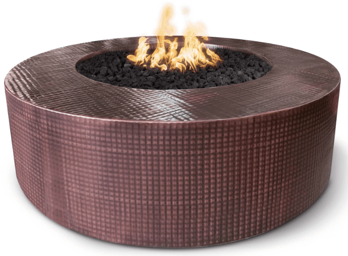 The Outdoor Plus 48 x 18 Inch Unity Hammered Copper Gas Fire Pit with Flame Sense